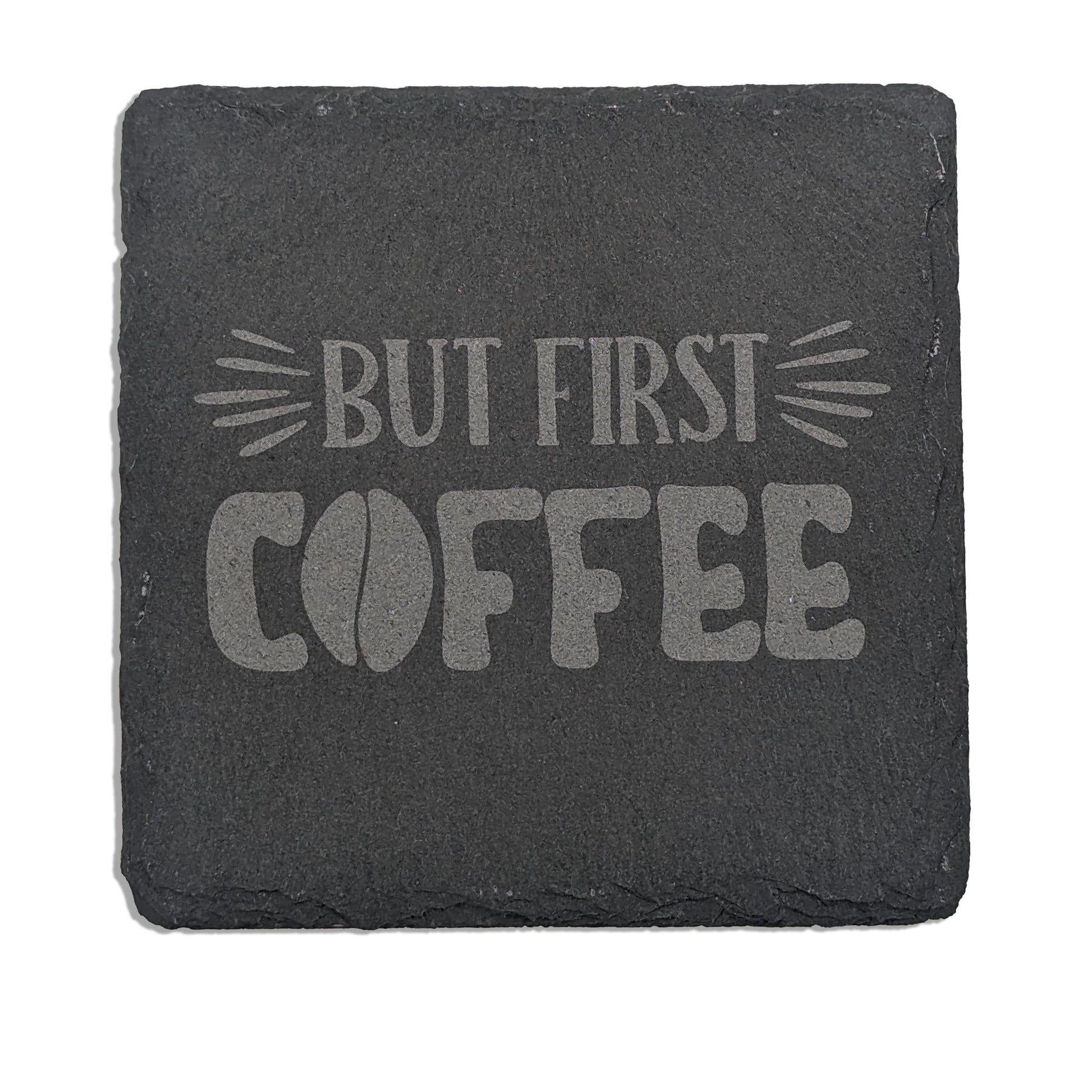 Caffeine Bliss 'But First Coffee' Square Slate Coaster with Bean Accent